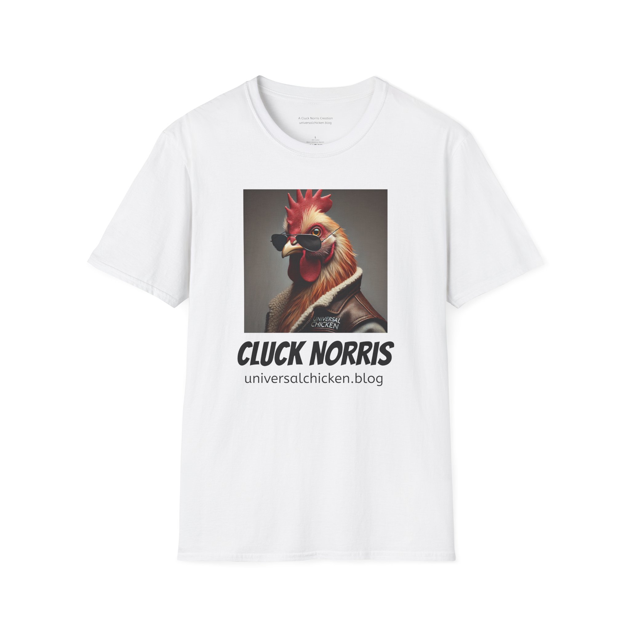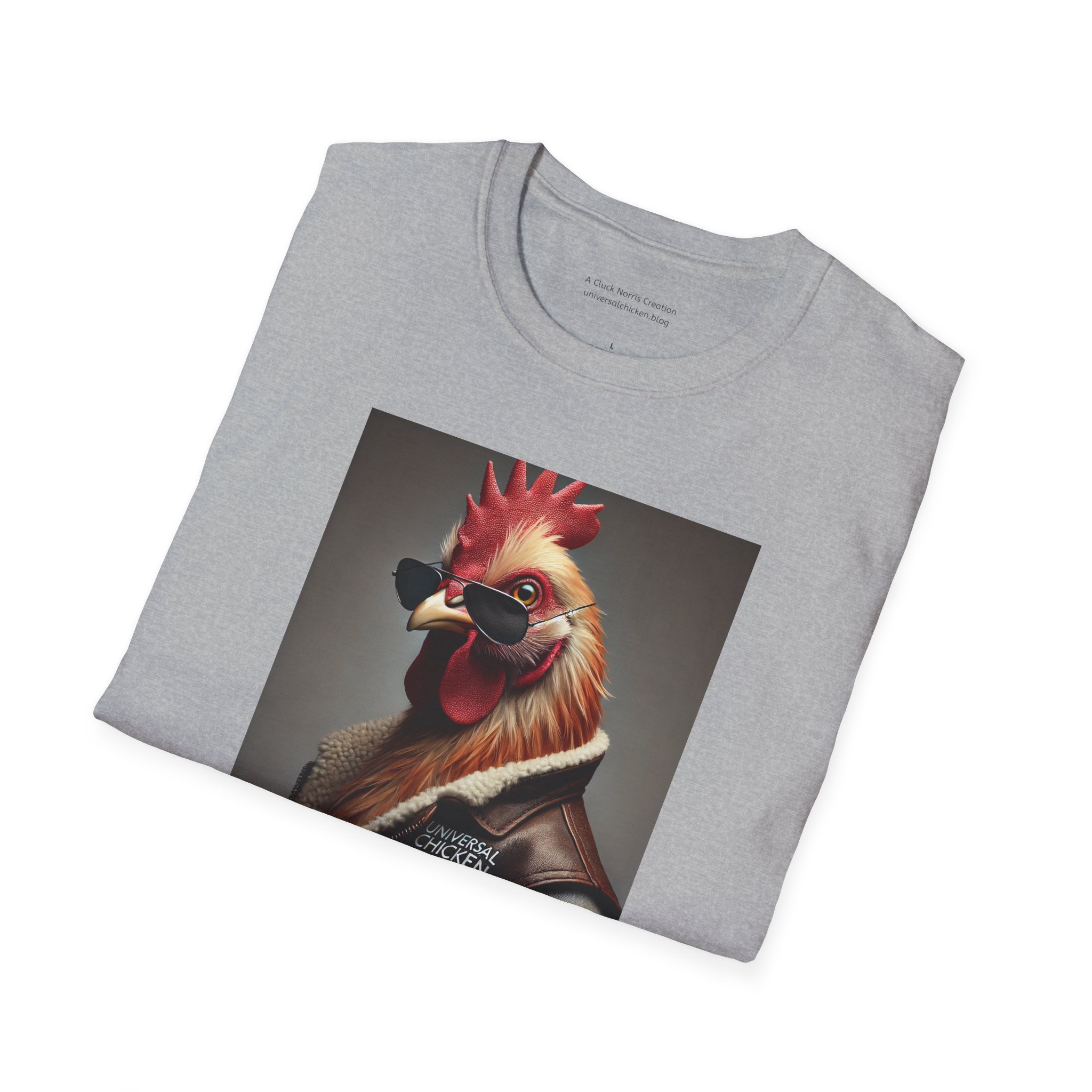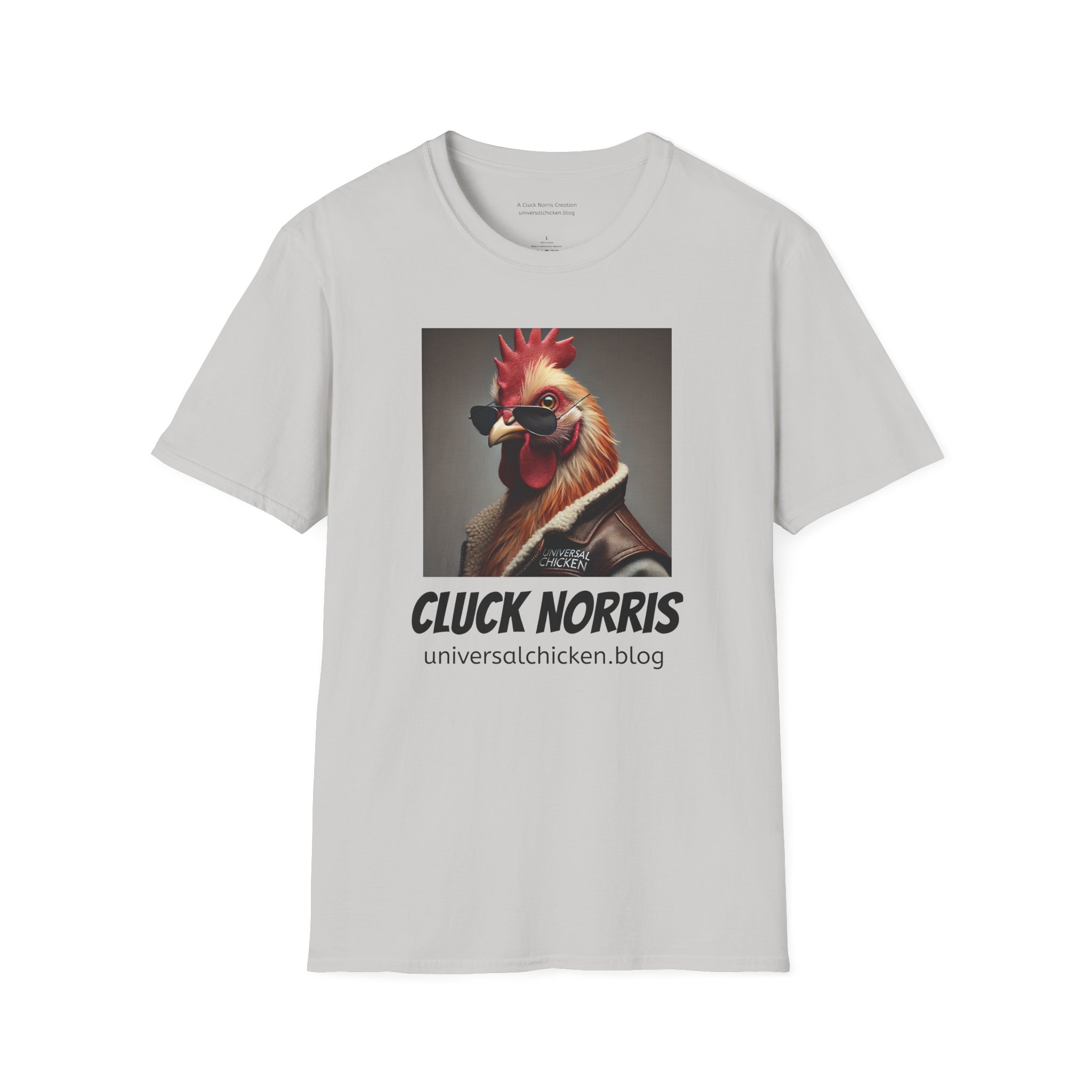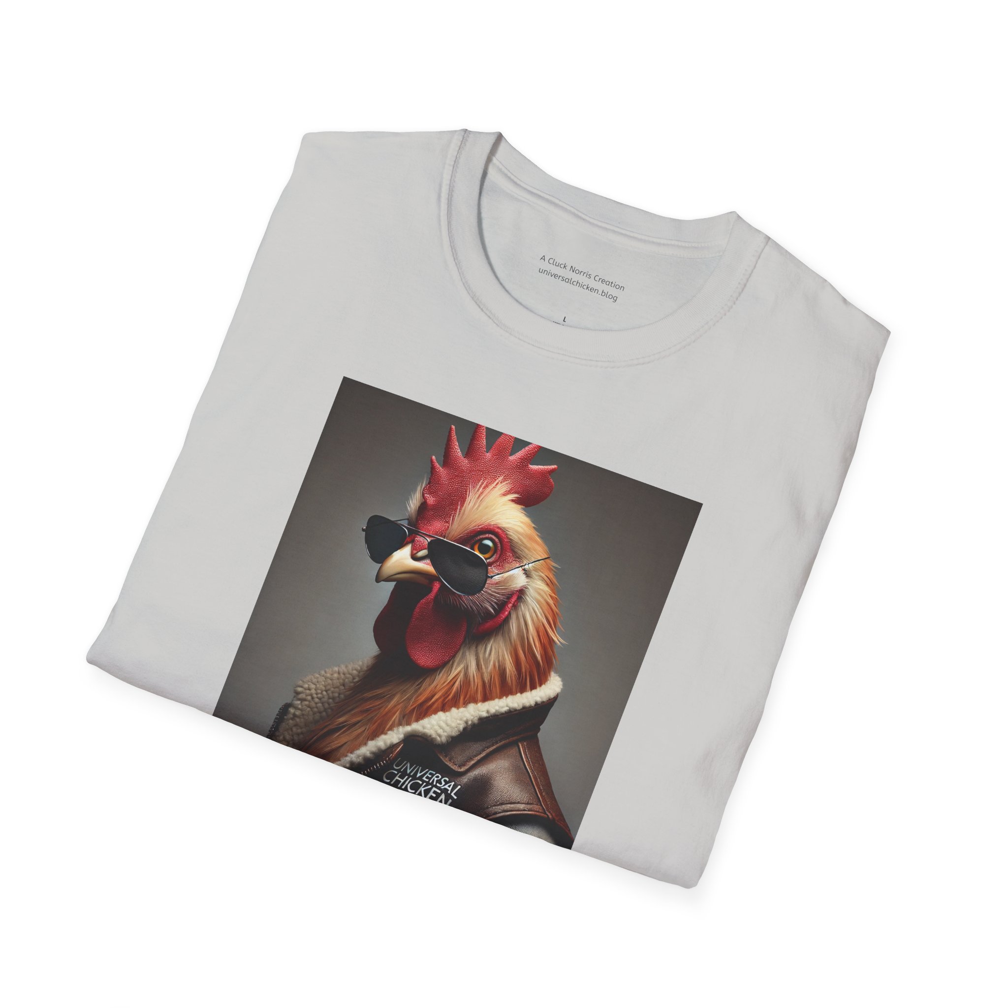 This T-shirt features the bold and edgy image of Cluck Norris, a chicken blogger from Universal Chicken Blog. With his confident look and touch of attitude, this shirt brings a fun and playful vibe. Perfect for chicken lovers, bloggers, and anyone looking to add some humor to their wardrobe. Great for casual wear, hanging out with friends, or attending quirky events.