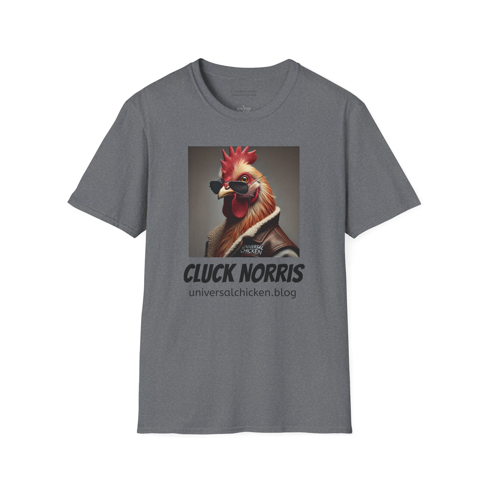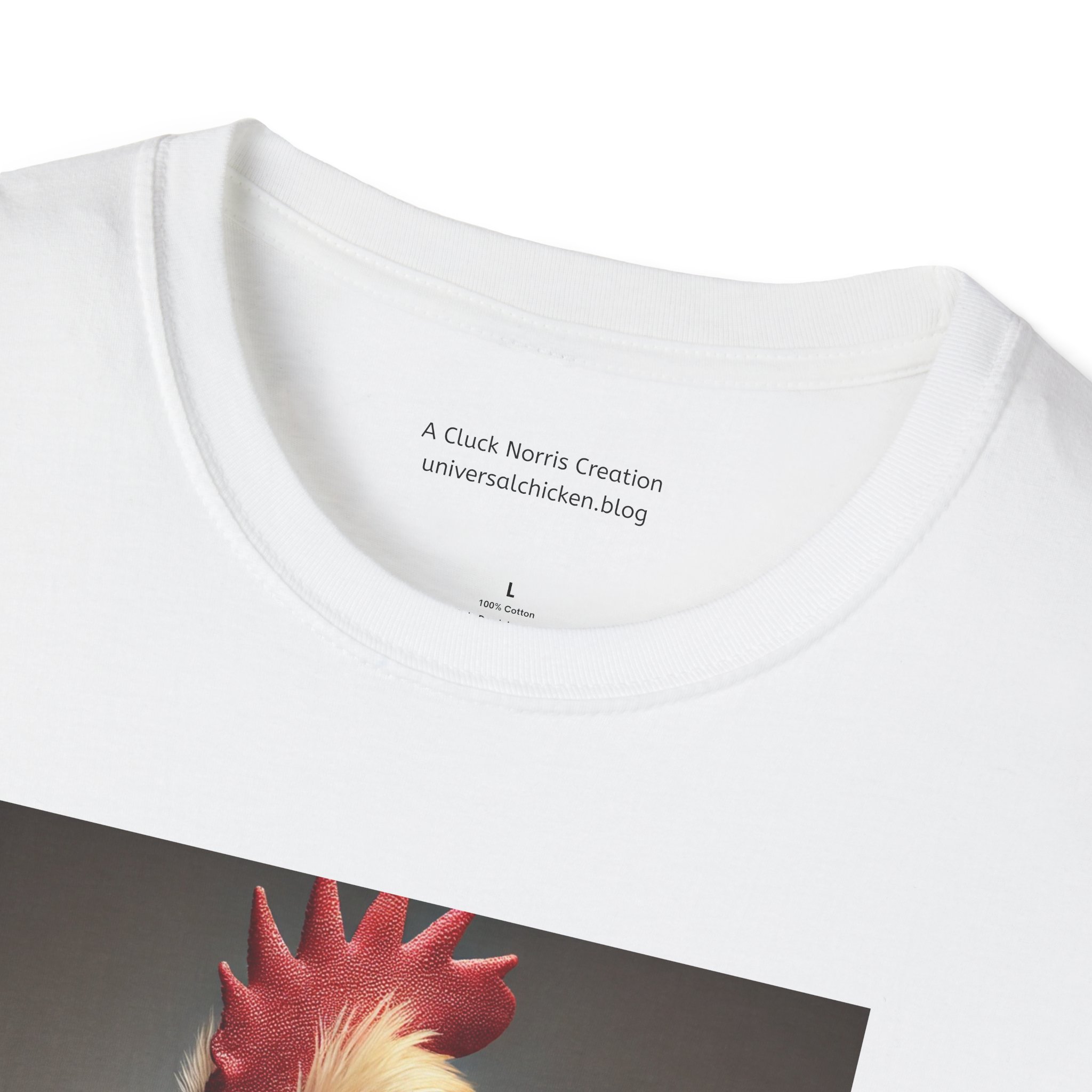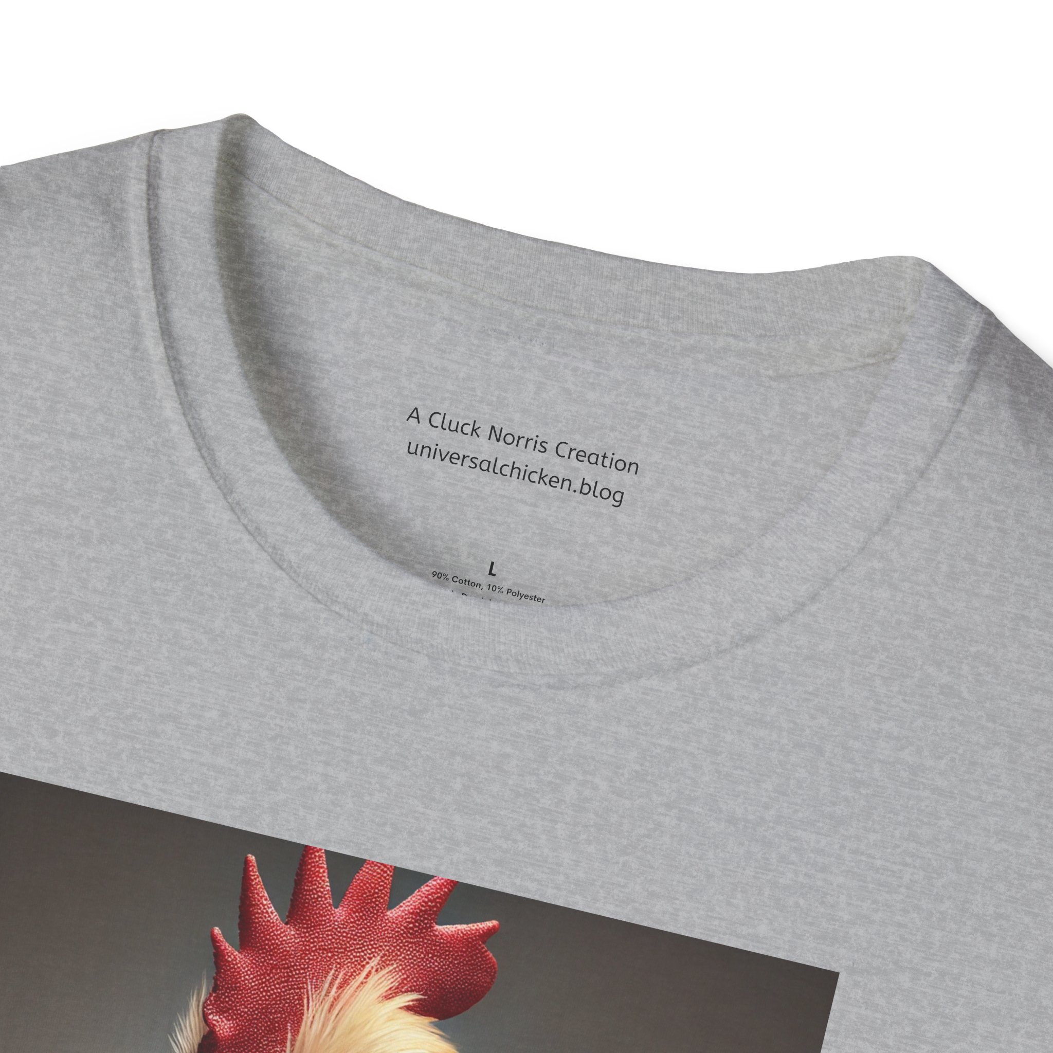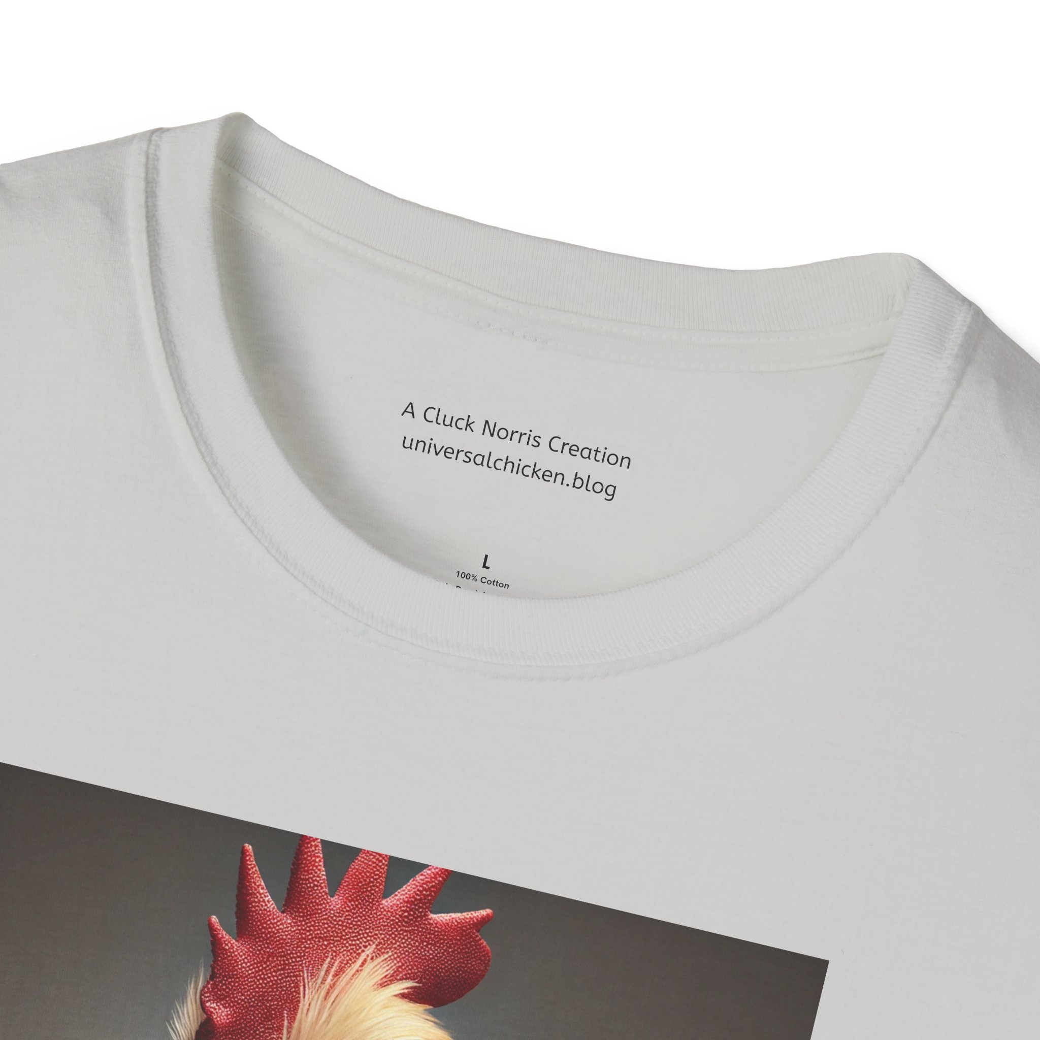 This T-shirt features the bold and edgy image of Cluck Norris, a chicken blogger from Universal Chicken Blog. With his confident look and touch of attitude, this shirt brings a fun and playful vibe. Perfect for chicken lovers, bloggers, and anyone looking to add some humor to their wardrobe. Great for casual wear, hanging out with friends, or attending quirky events.
