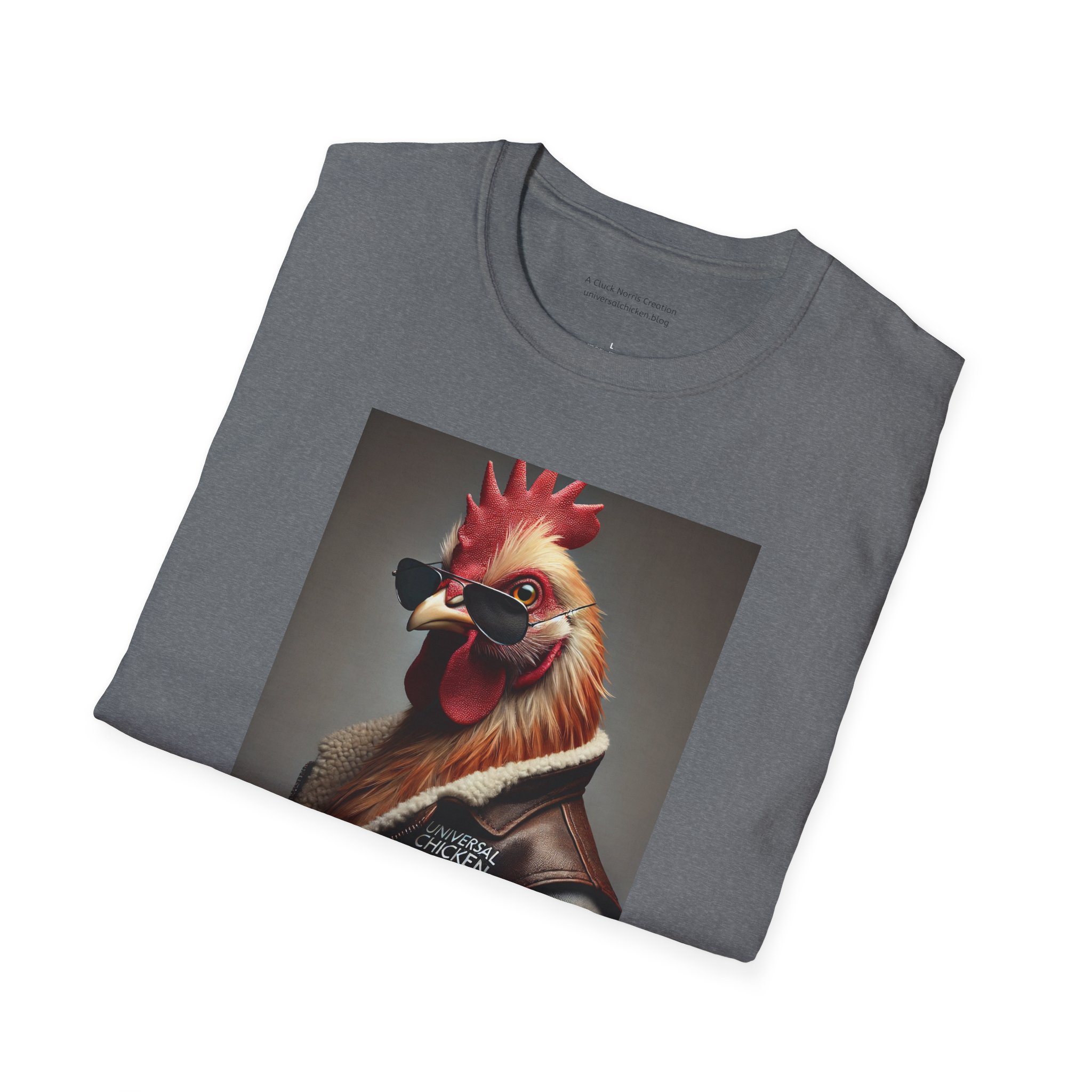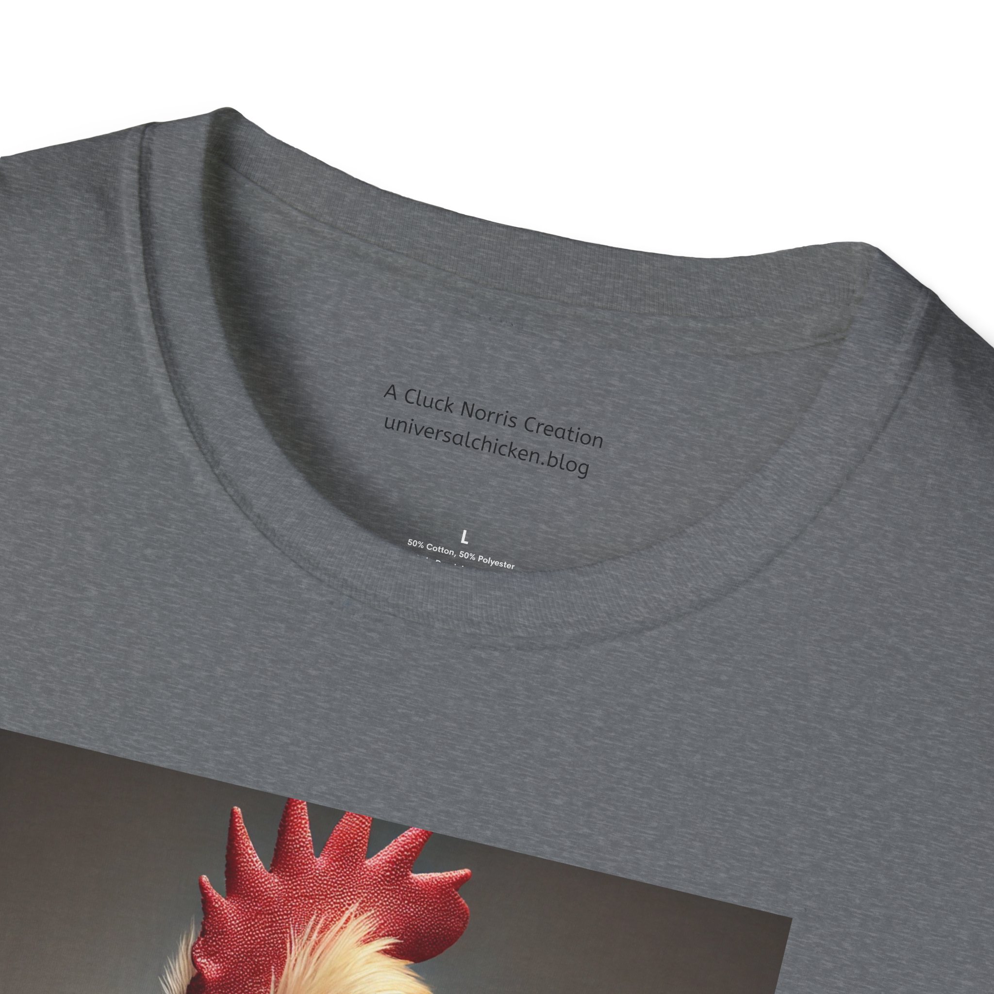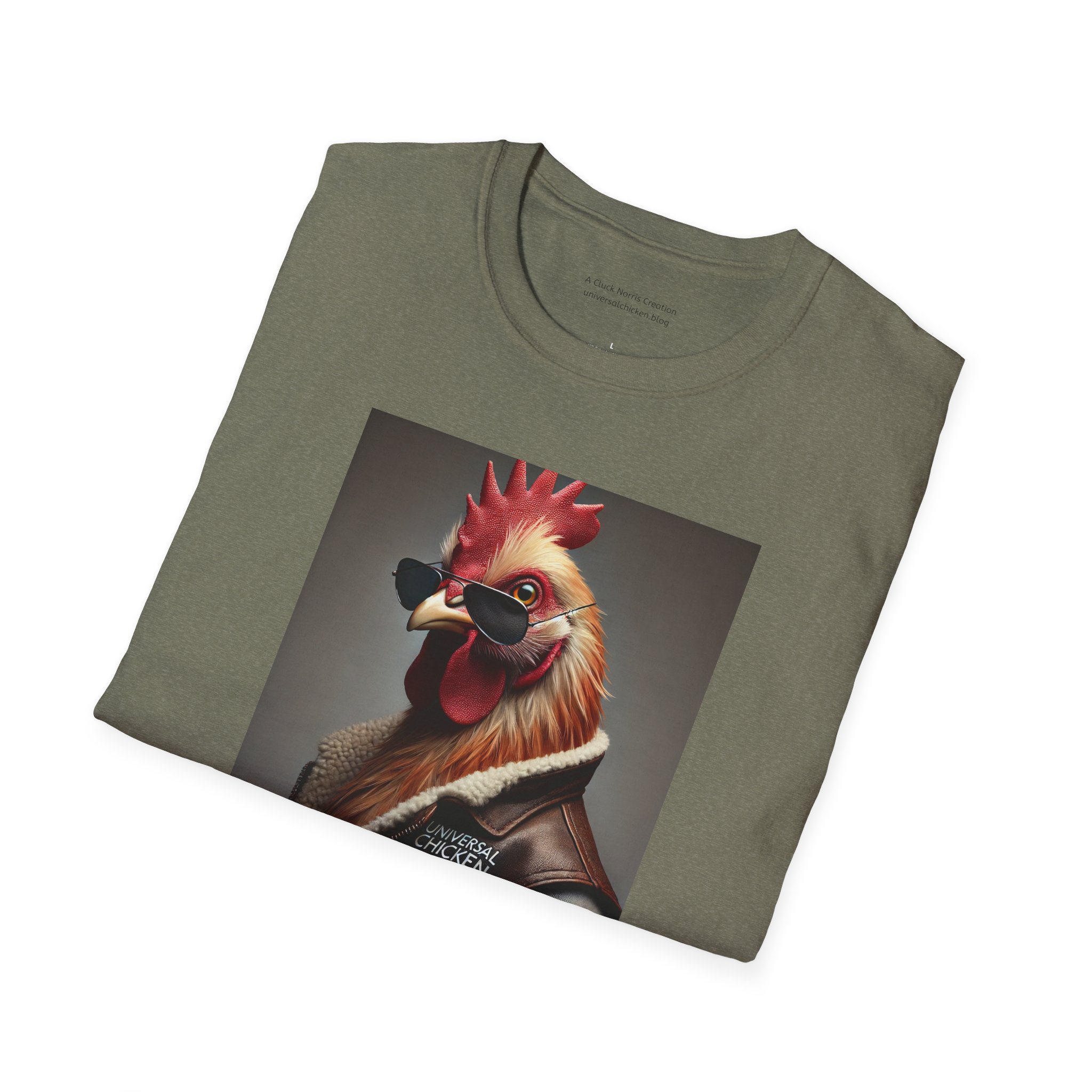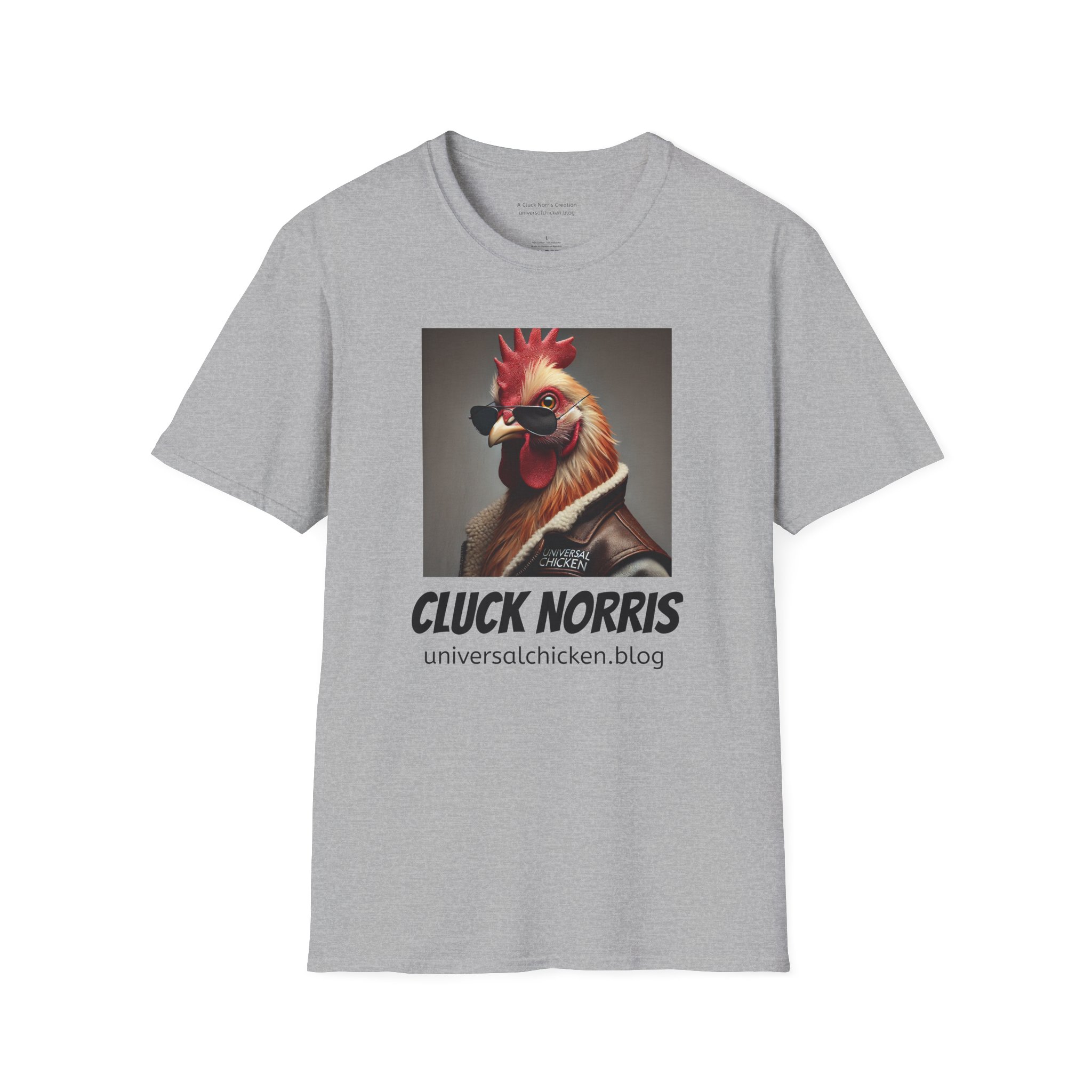 This T-shirt features the bold and edgy image of Cluck Norris, a chicken blogger from Universal Chicken Blog. With his confident look and touch of attitude, this shirt brings a fun and playful vibe. Perfect for chicken lovers, bloggers, and anyone looking to add some humor to their wardrobe. Great for casual wear, hanging out with friends, or attending quirky events.