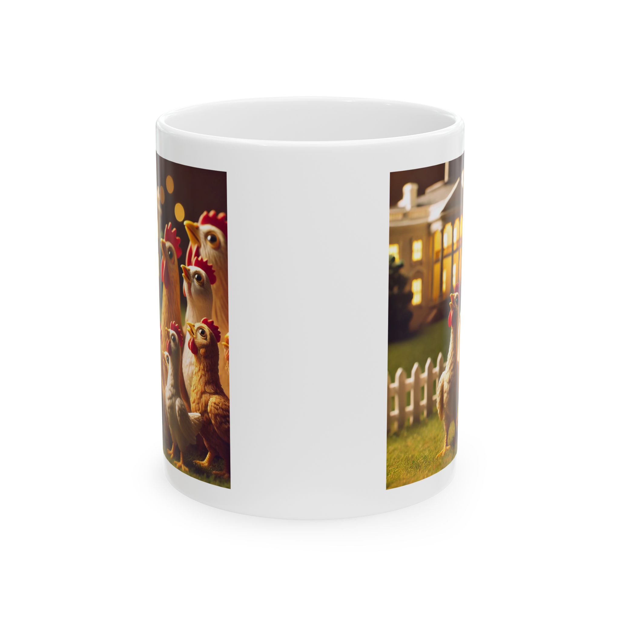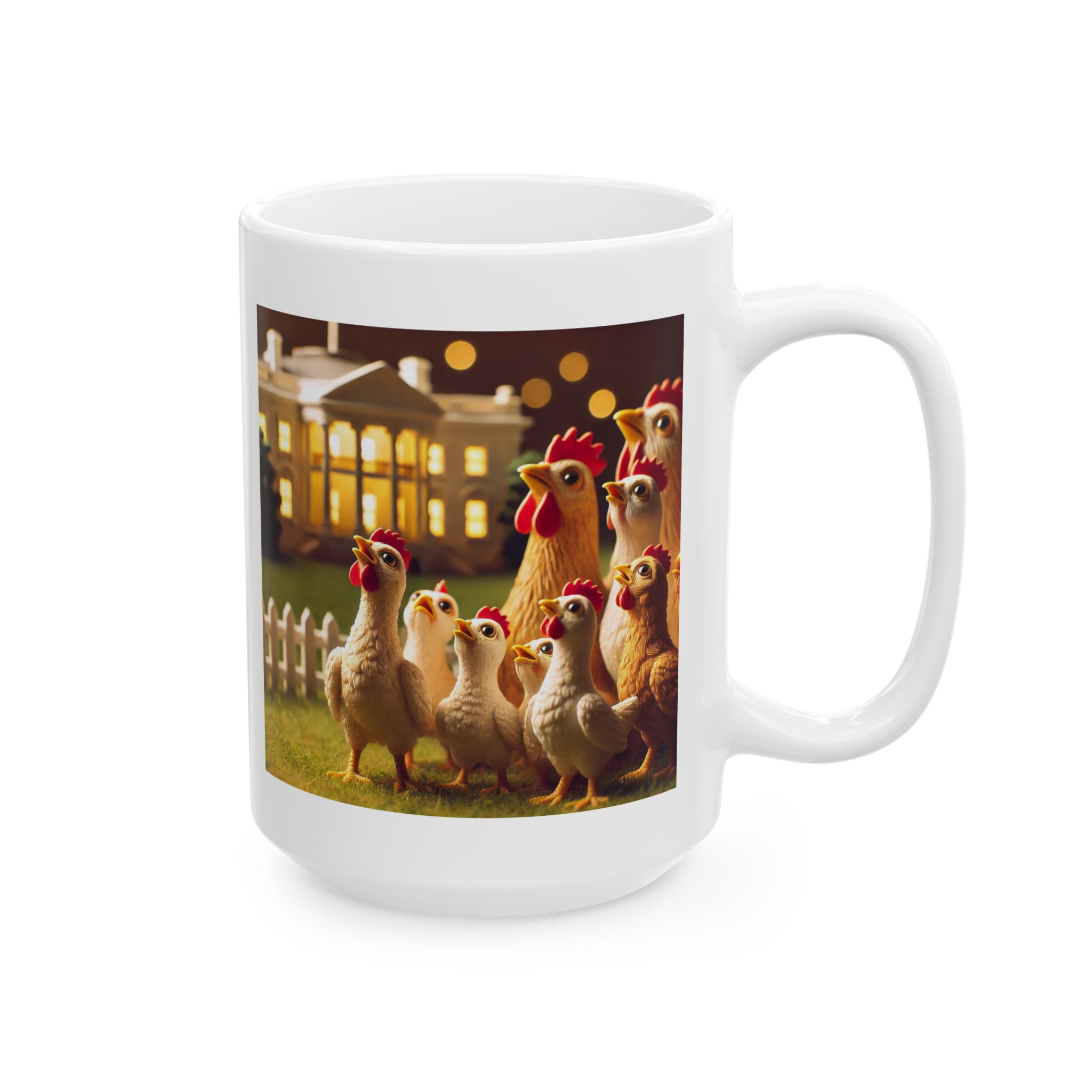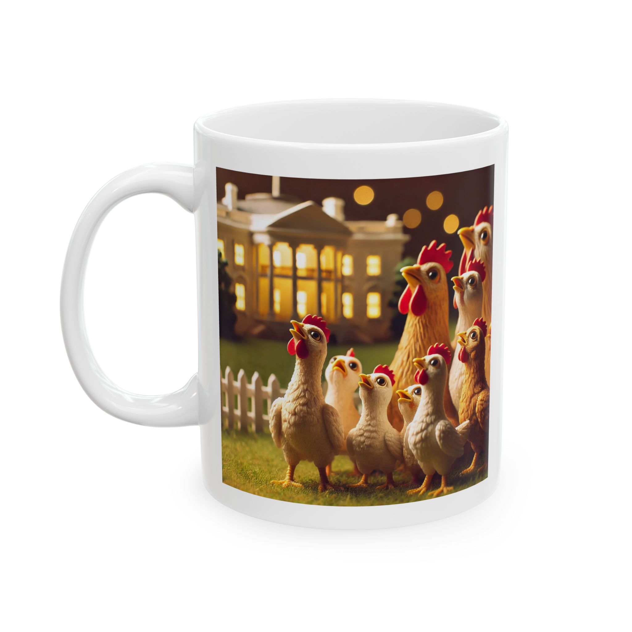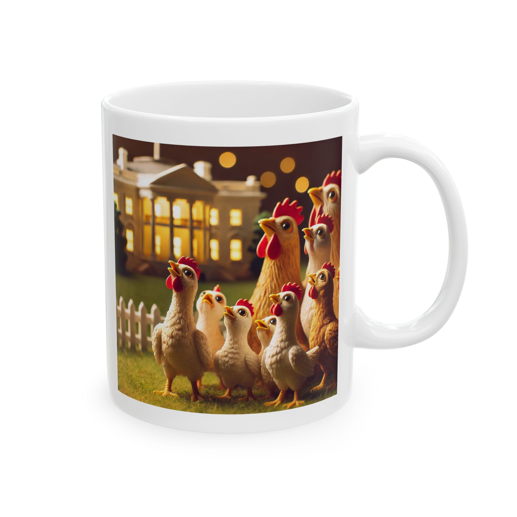 A ceramic mug featuring hopeful chickens for the future, perfect for adding a touch of positivity to your morning routine. This mug is suitable for daily use and can be a great gift for animal lovers or anyone in need of a little inspiration. Relevant for Easter, Spring, or any cheerful occasion.