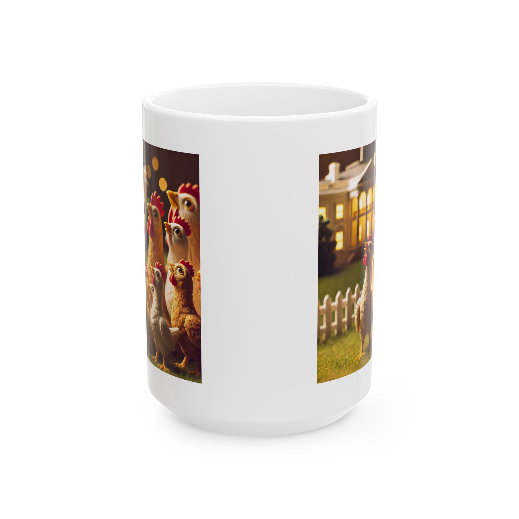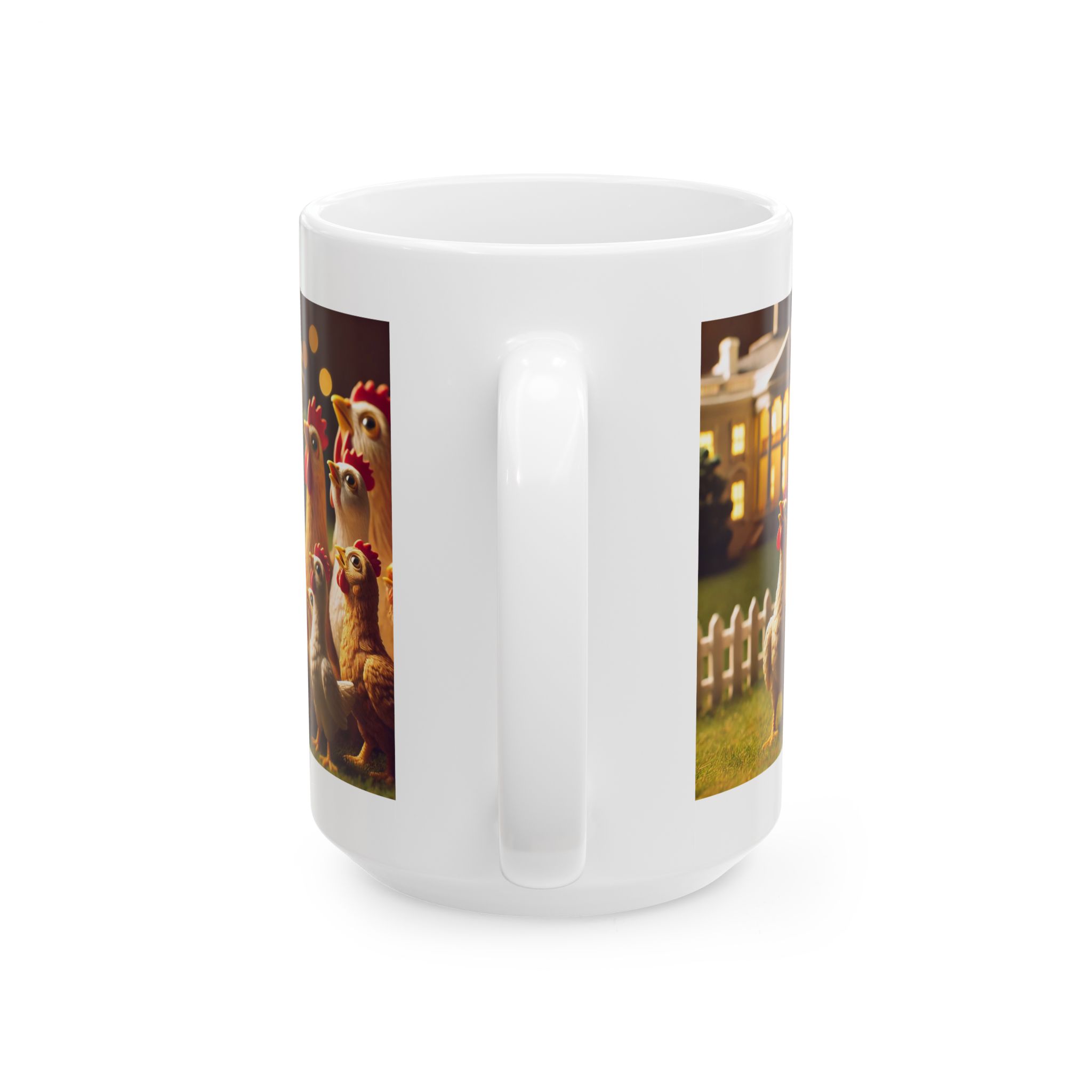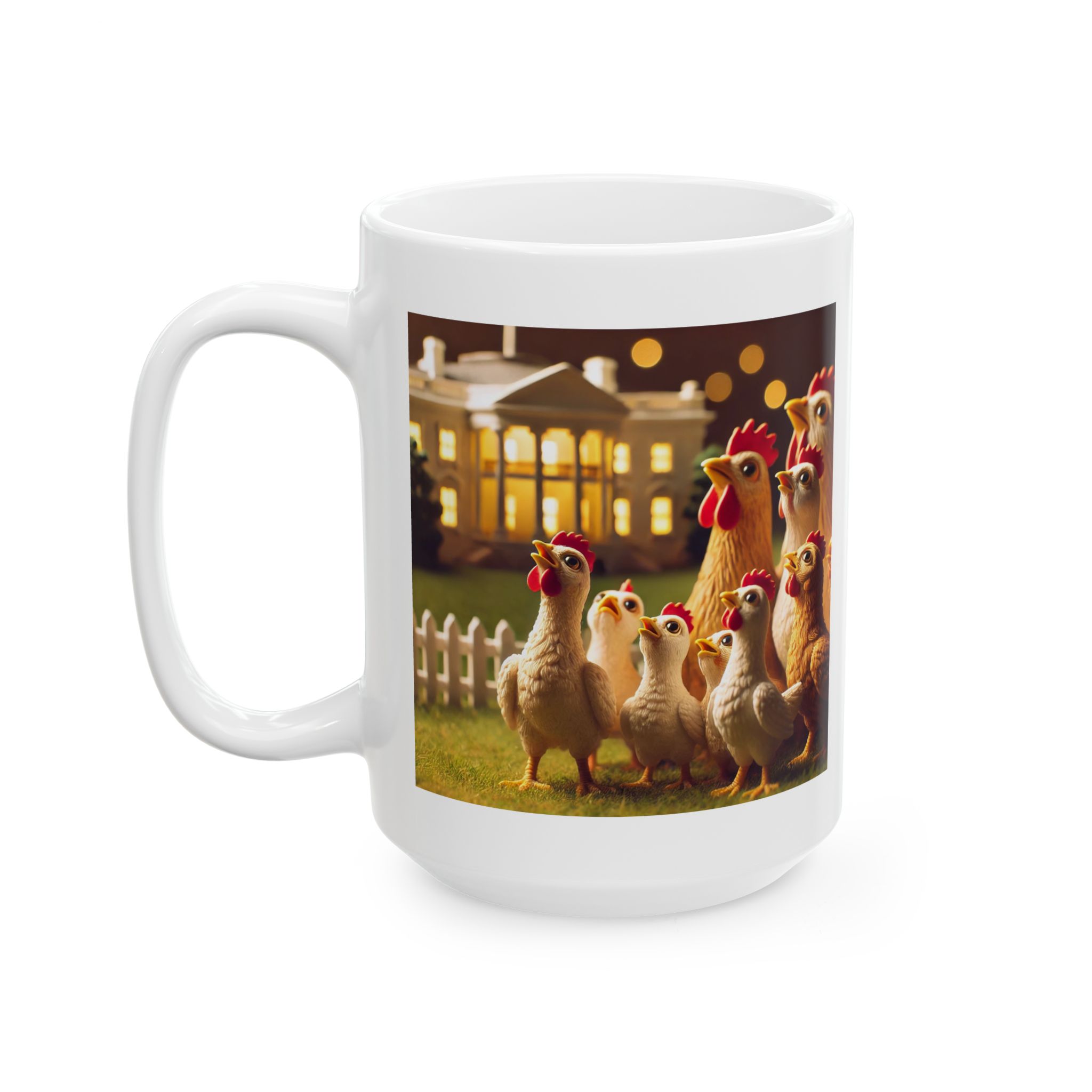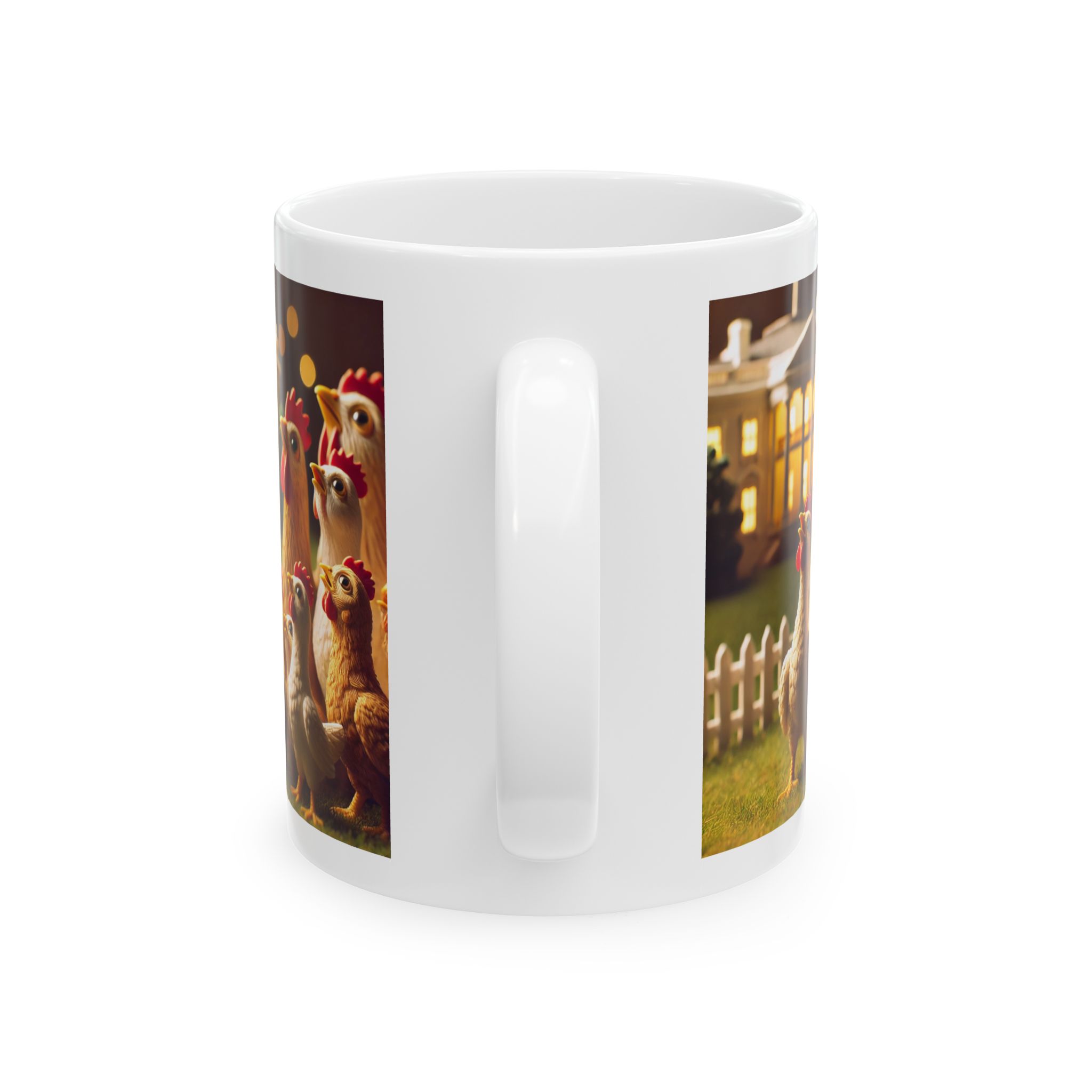 A ceramic mug featuring hopeful chickens for the future, perfect for adding a touch of positivity to your morning routine. This mug is suitable for daily use and can be a great gift for animal lovers or anyone in need of a little inspiration. Relevant for Easter, Spring, or any cheerful occasion.